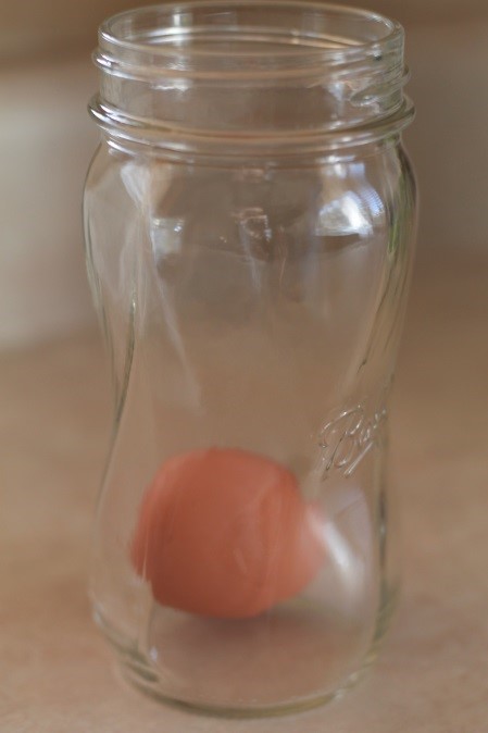 Gently place the egg in the mason jar.