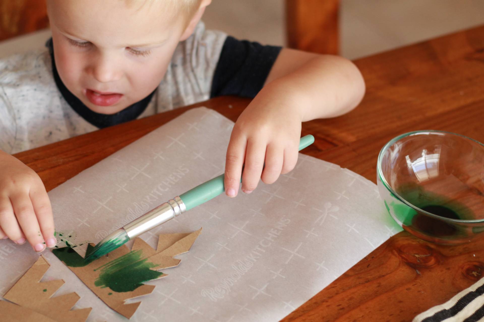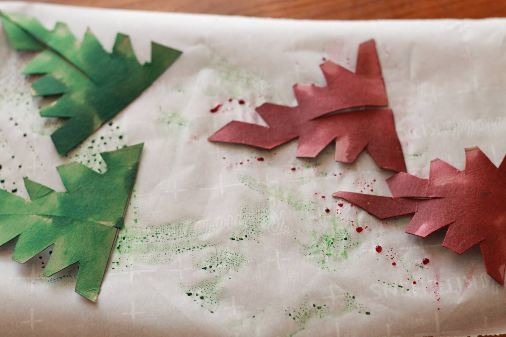 Next, we painted our trees. We used watercolor paint and painted them red and green for the holiday.