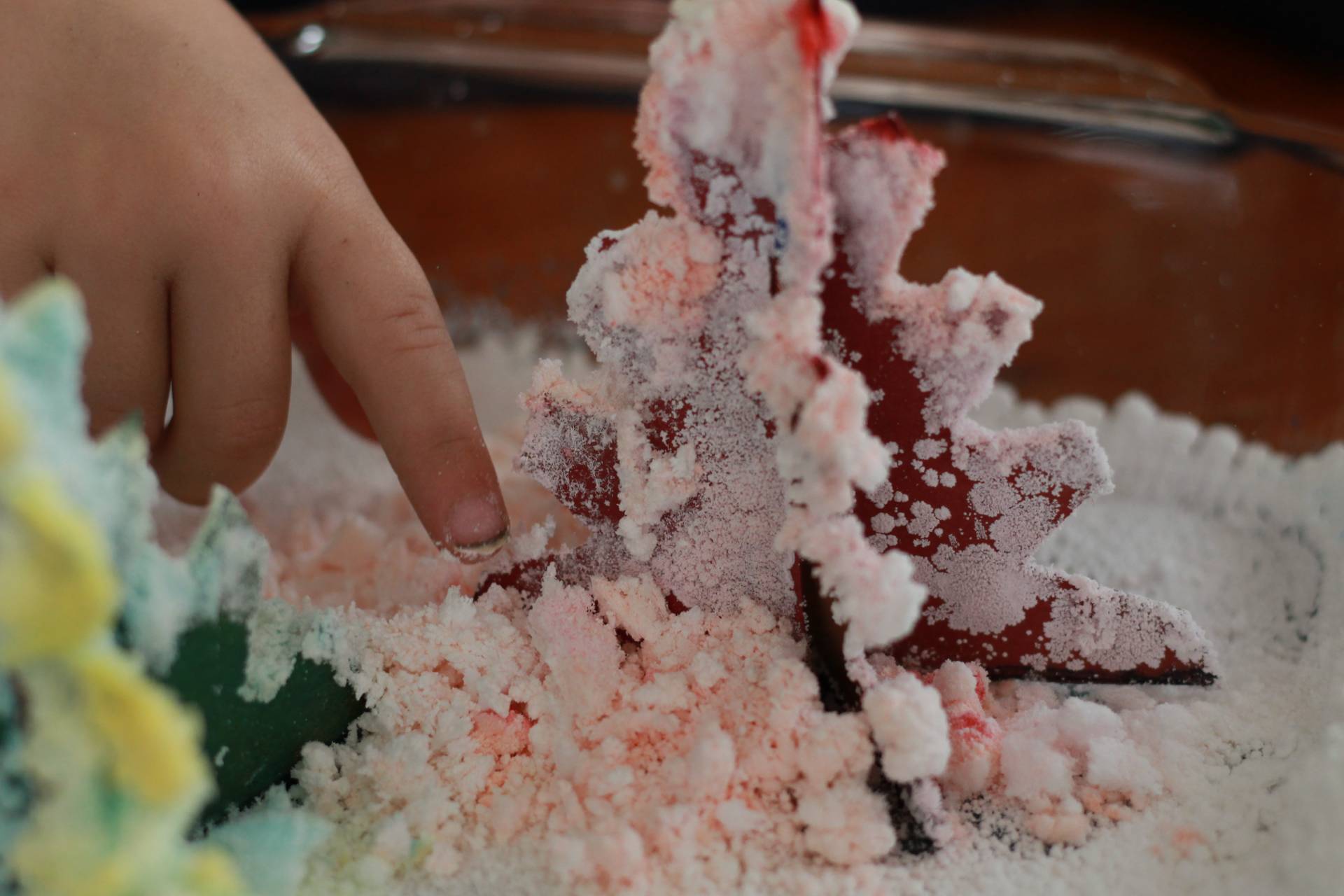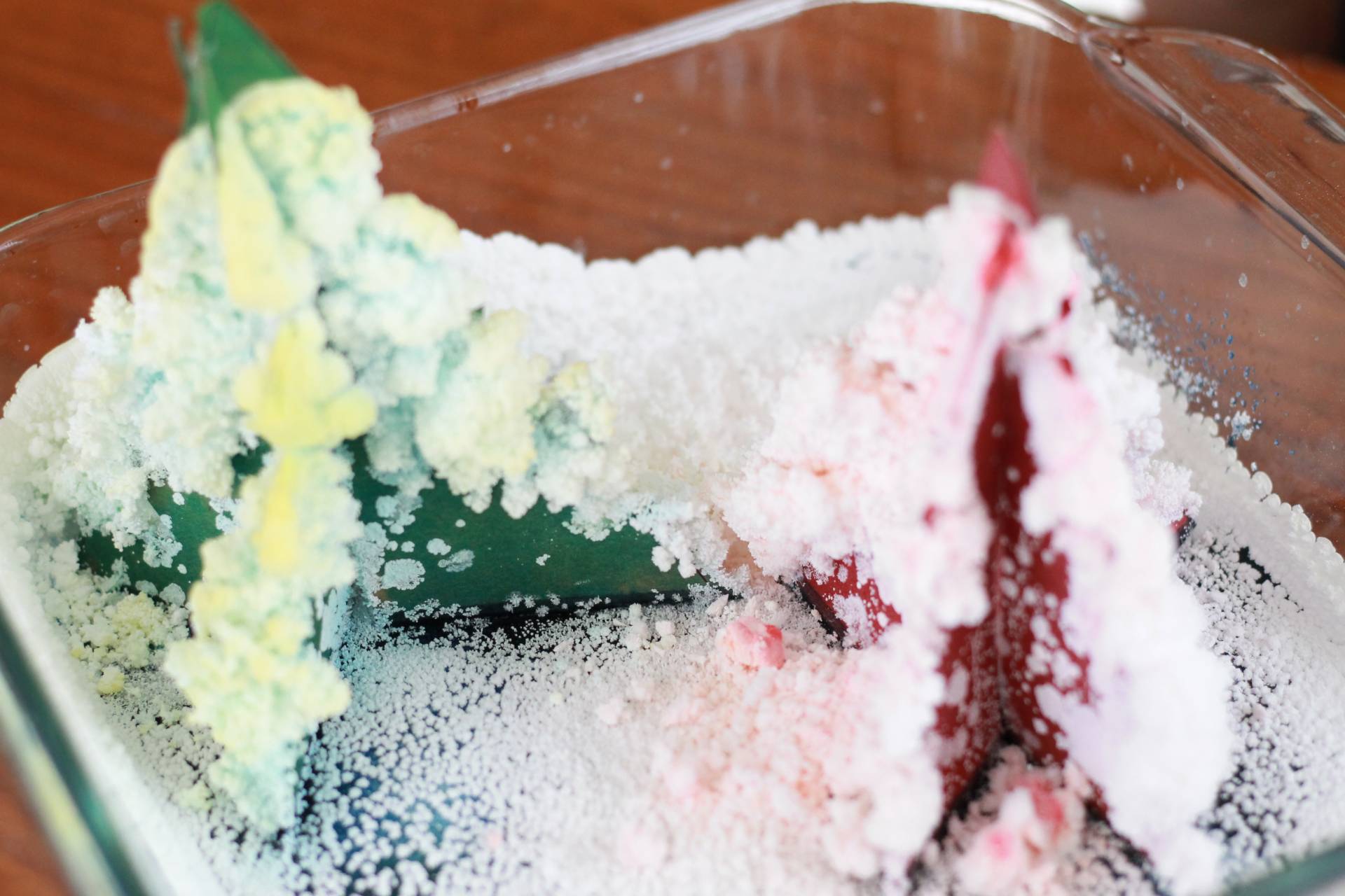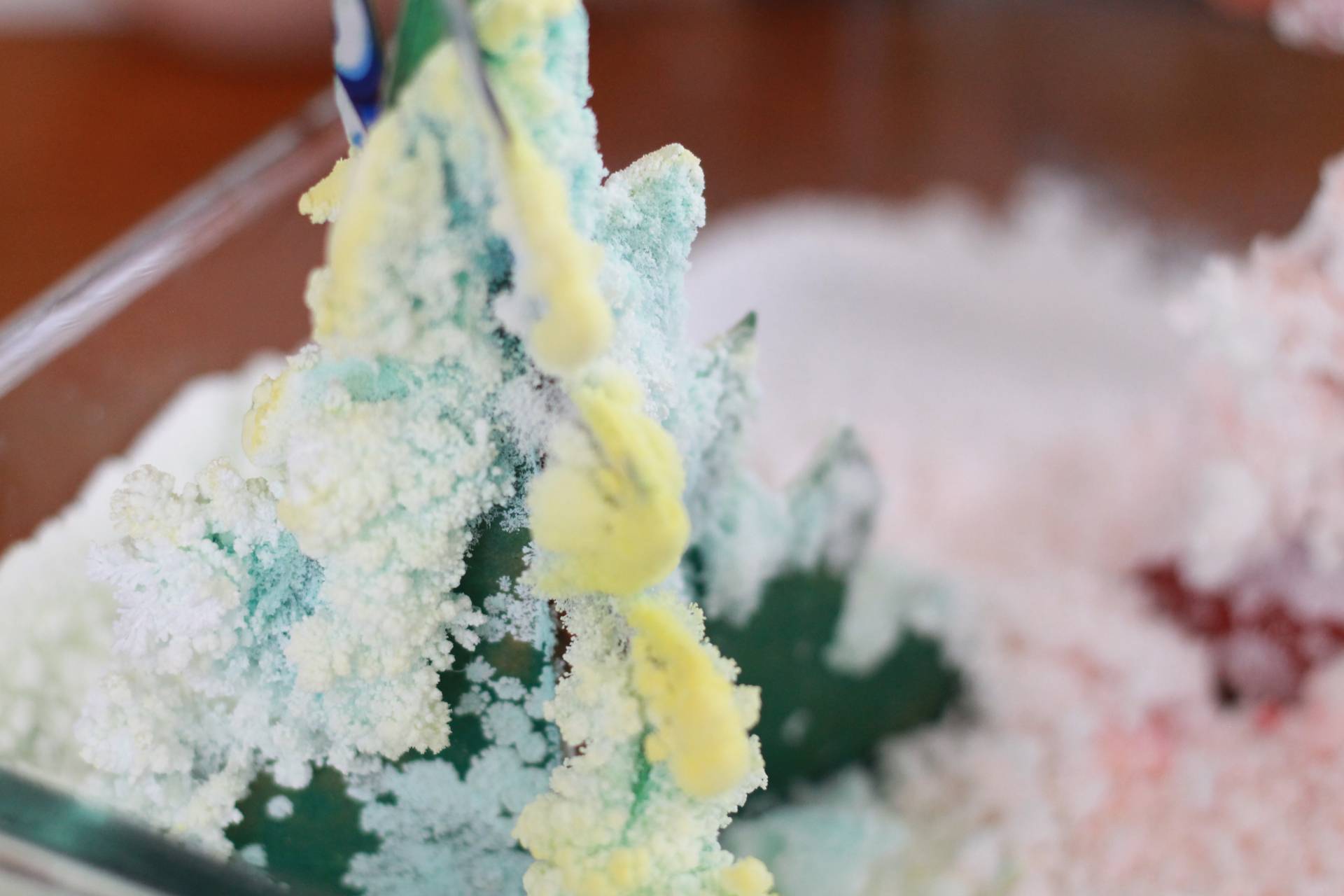 It was neat to see our crystals take in the color of paint we used on the tree! It looked like it had “snowed”.