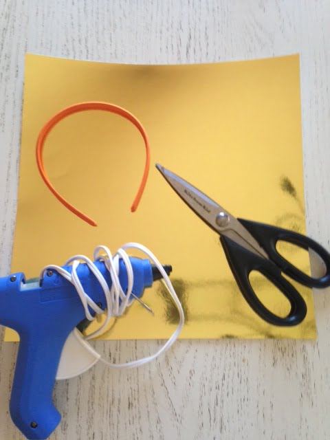Supplies: hot glue gun, gold card stock, headband and scissors.
