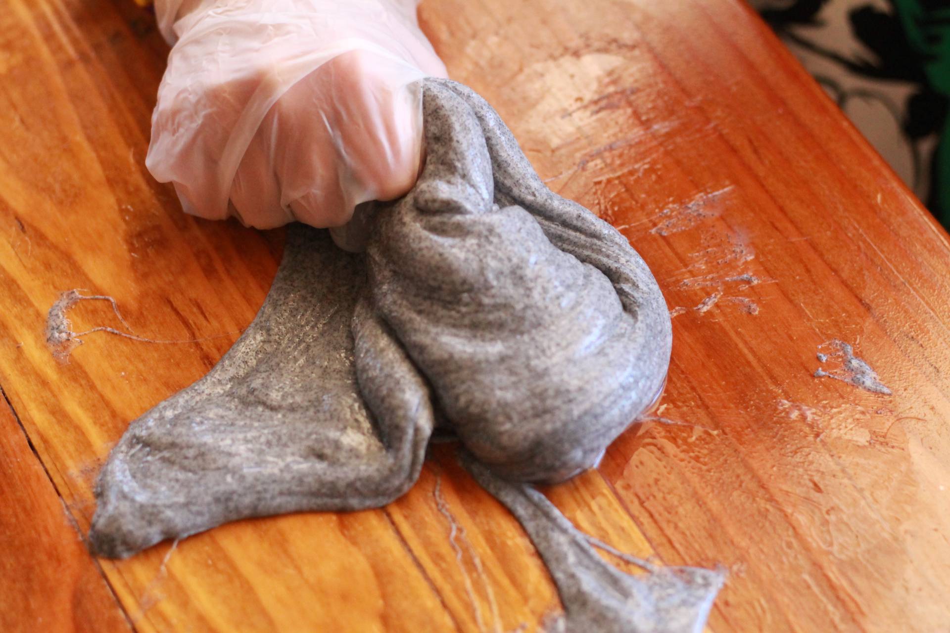 Once consistency is reached, take slime out of the bowl and knead together with clean, dry hands.