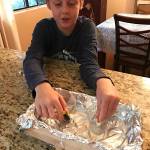 We sat and brainstormed ideas together. The kids decided to try aluminum foil as the pool liner. After cutting a piece of foil large enough to fit the structure we molded it to the inside of the pool frame.
