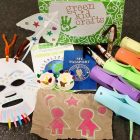 The cultural activities in our Around the World Box will take your traveler to six exciting places: Japan, India, Africa, Guatemala, Australia, and China. At each stop we’ll find a wealth of crafting inspiration as we learn about a unique culture and holiday traditions while developing our appreciation for the differences that make the world, and its people, beautiful. Projects include making Diwali Candles from India, designing an African Mask, making Japanese Lanterns, creating a Chinese Hand Kite that really flies, Aboriginal Rock Art from Australia, and Guatemalan Worry Dolls and a Worry Box from South America. This box also comes with a Passport Sticker Book.