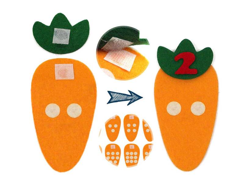 Practice counting skills with this hands on activity that has kids matching the number of holes in carrots with a number on the carrot top! This hands-on learning kit celebrates thinking, questioning and play and will have everyone tinkering, giggling and learning long afterwards. Our felt carrot counting kit combines math, hands-on learning and story time. Comes with 10 Velcro-tabbed felt carrots and 10 Velcro-tabbed felt carrot tops.