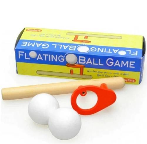 This floating ball game and classic toy by Schylling is a wonderful example of Bernoulli’s Principle, the same principle that allows heavier-than-air objects, like airplanes, to fly. As air is forced through the wooden pipe and around the ball, it must move faster in order to “catch up” on the other side. The result is a decrease in air pressure around the ball than in turn keeps the ball in place!