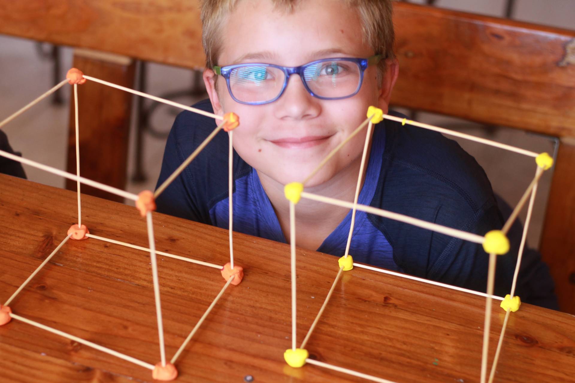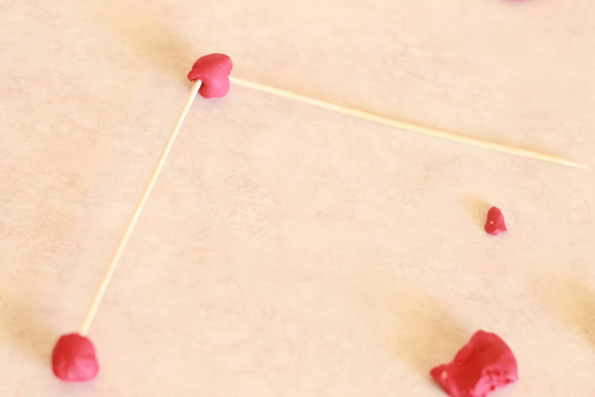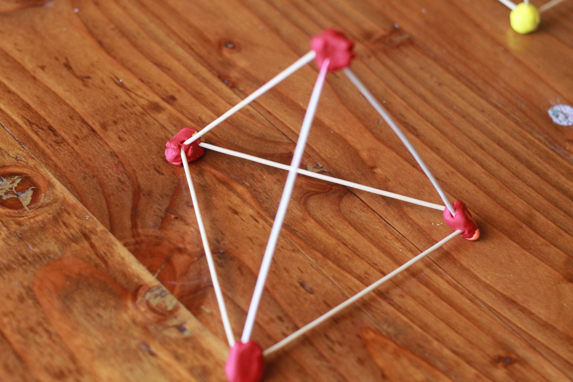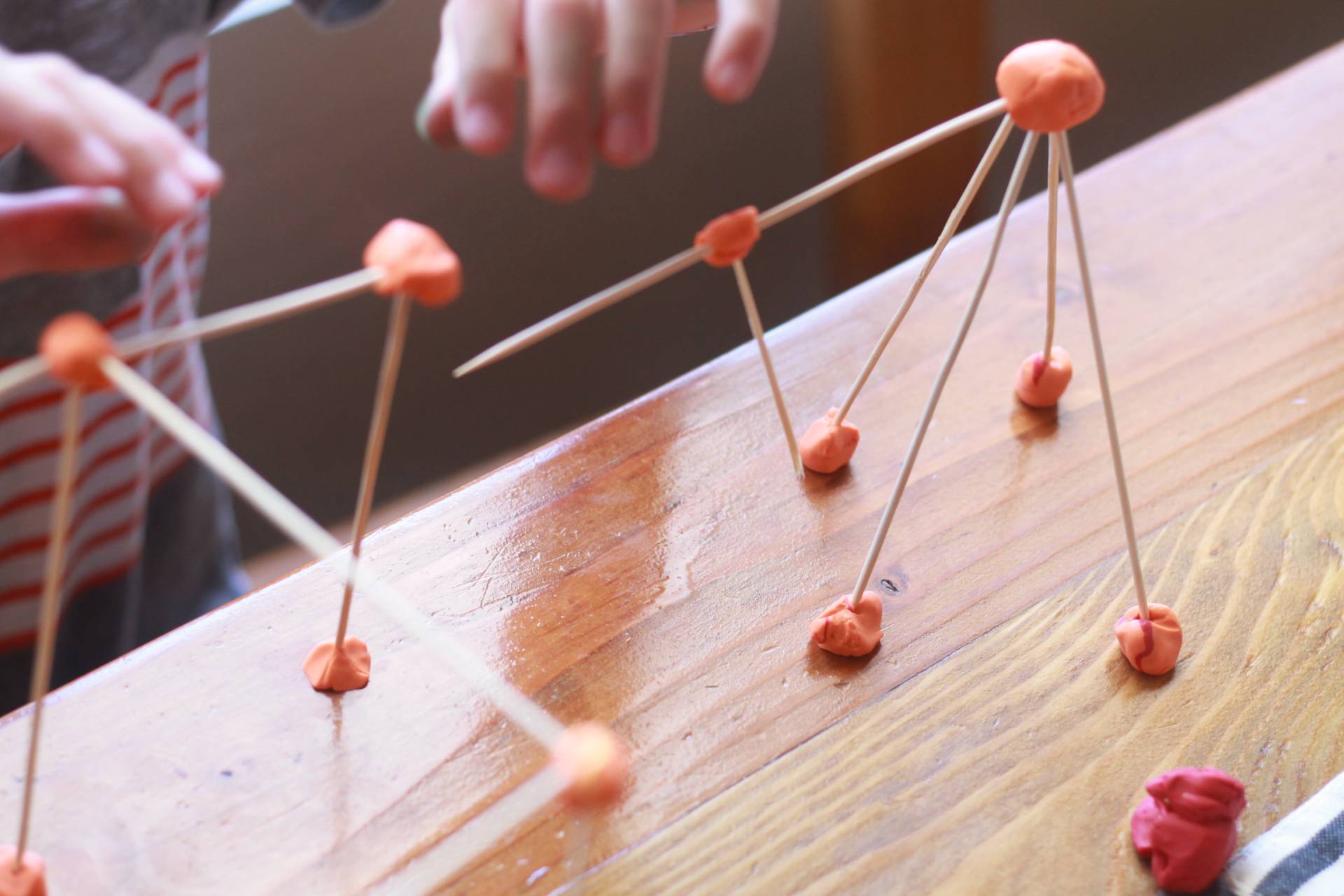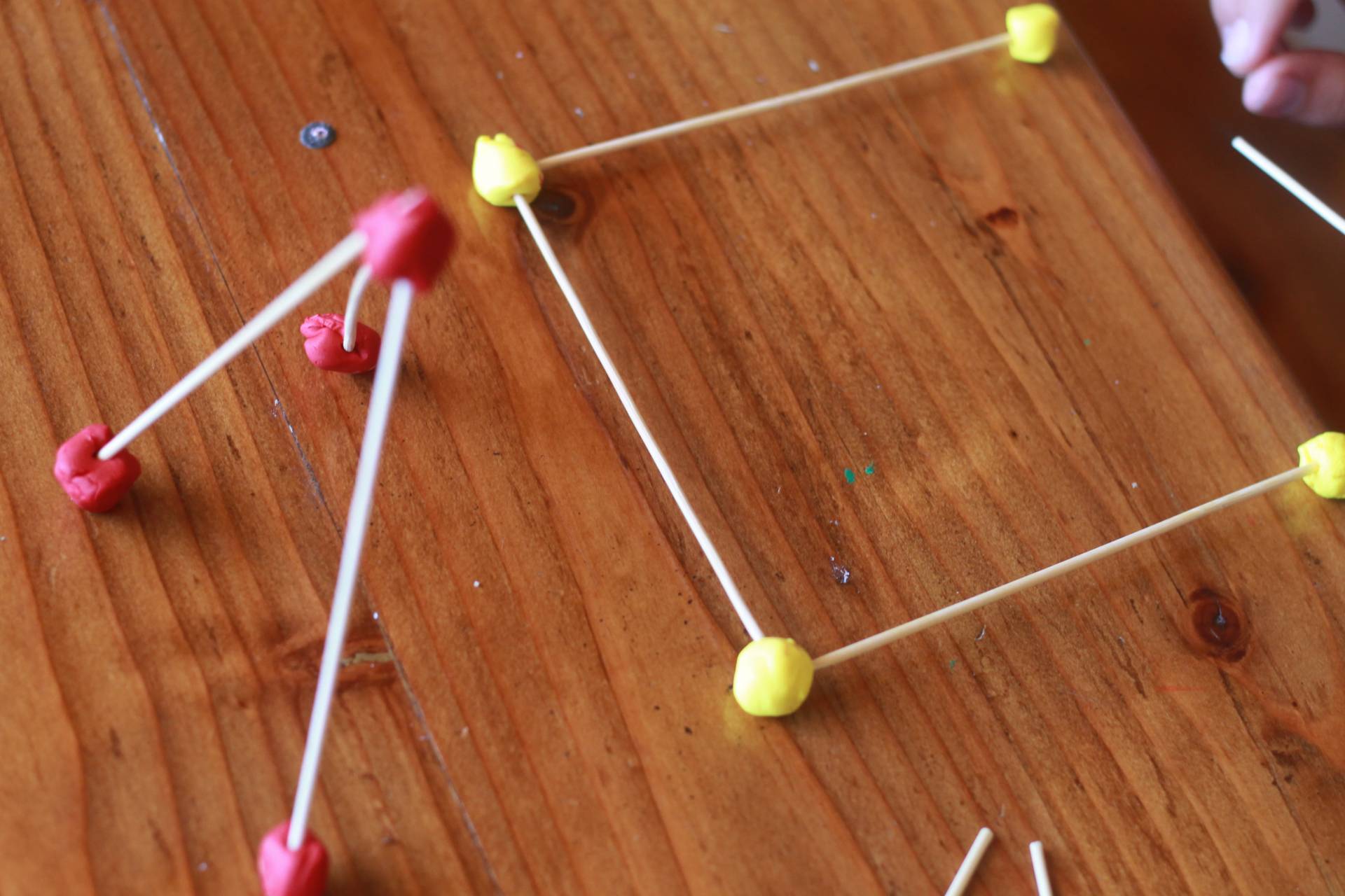 Build! Use the clay balls at the joints between the skewers. As the clay hardens, the structure will become more brittle.