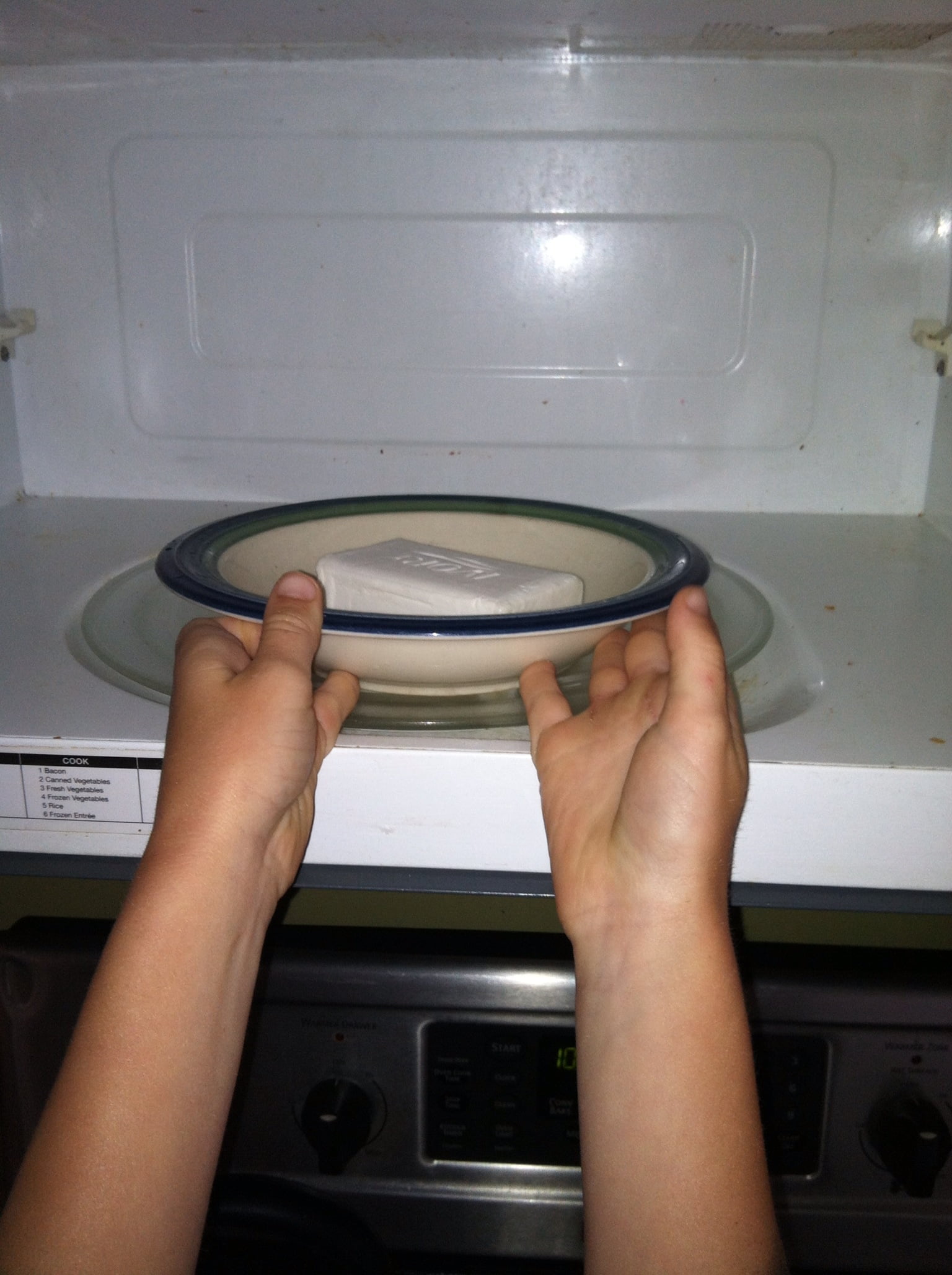 Supplies: Ivory soap (yes, only Ivory soap!), microwave safe dish, and a microwave.